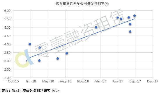 受流动性收紧及市场利率波动影响,公司债发行成本较2016年有所上升,远东租赁2017年发行利率上浮约170bps。